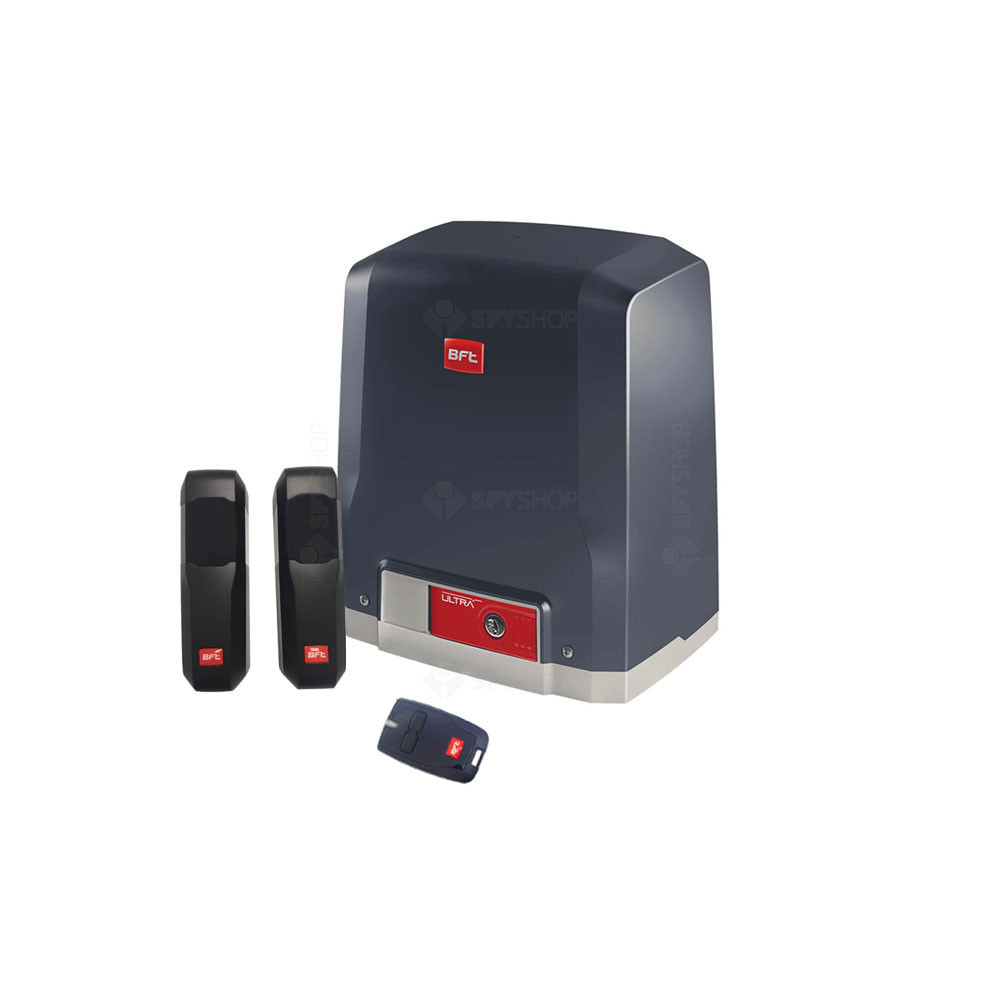 Motorul beneficiaza de limitator electromecanic si de blocare mecanica. Gradul de protectie este unul ridicat impotriva conditiilor meteo nefavorabile si a prafului, datorita standardului IP24. Kit-ul este alcatuit dintr-un motor BFT Deimos A400 cu unitate de control incorporata, 1 set de fotocelule si 1 telecomanda Mitto 2 cu 2 canale.
